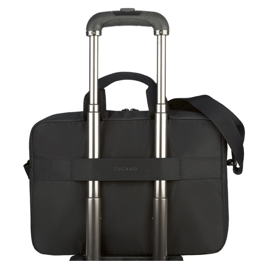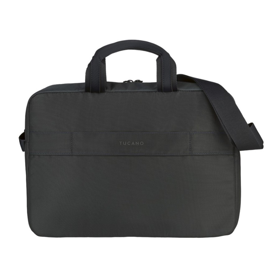 Легка текстильна сумка Tucano Global 15,6 для MacBook Pro16" та ноутбуків 15,6/16". Вона має компактний і сучасний дизайн, оснащена зручним центральним відділенням, з внутрішньою кишеню для ноутбука, та добре організовану передню кишеню органайзер на блискавці. Сумка має незнімний плечовий ремінь з регулюванням по довжині, а також пасок на задній стінці для кріплення сумки на телескопічній ручці валізи.