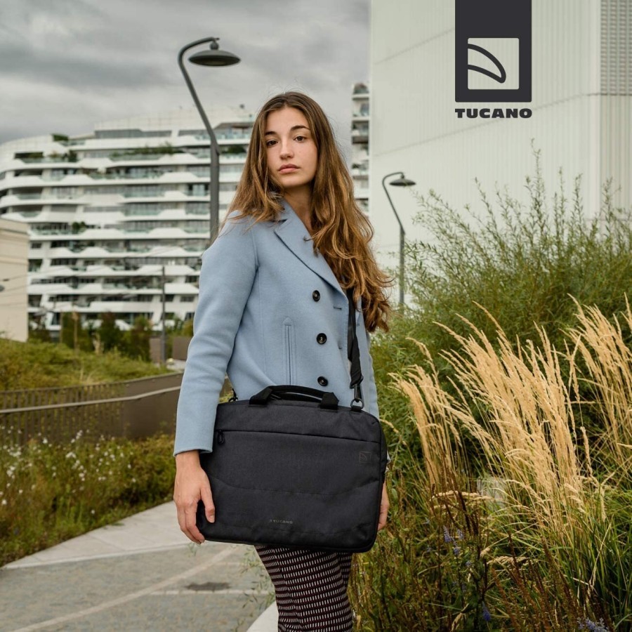 Тонка і компактна сумка Tucano Idea сумісна з ноутбуком Ultrabook до 15,6"і MacBook Pro 15" Retina. Має широку кишеню на блискавці на передній панелі з внутрішнім органайзером і кишеньками для авторучок, візиток, ключів. Основне відділення доповнюється ще й кишенею для планшетів до 10'', і забезпечує захист як ноутбука так і планшету. Ця сумка може так само використовуватися як чохол, завдяки гнучким ручкам і кріпленню плечового ременя на задній стінці. Все необхідне ви завжди візьмете з собою, при цьому з мінімальною вагою, і хорошим захистом.