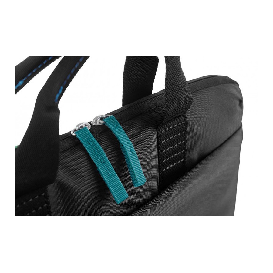 Надтонка сумка Tucano Smilza 13"/14" для ноутбуків розміром до 14.1 "включно. Пошита з високотехнологічного матеріалу з оздоблювальними деталями контрастного кольору. Єдине внутрішнє відділення з неопреновими куточками для надійної фіксації ноутбука. На передній стороні є містка зовнішня кишеня для аксесуарів (блок живлення, миша, смартфон). Подвійні ручки пришиті 5-ма швами, знімний плечовий ремінь з регулюванням по довжині, бігунки (зіпер-пуллер) з нержавіючої сталі.