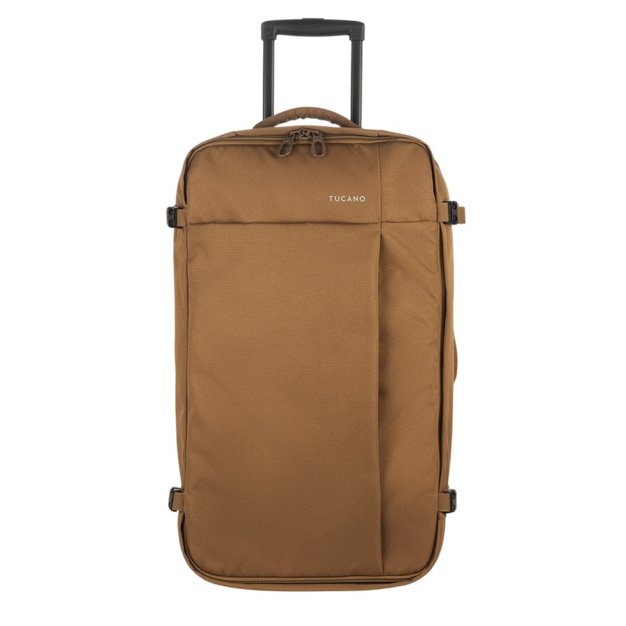 Двоколісна дорожня сумка з телескопічною ручкою з лінійки TUGO Trolley M. Основа та задня панель виготовлені з термоформованого матеріалу, і надають жорсткості всій конструкції. Велике головне відділення, що вміщує до 45 літрів корисного об'єму і оснащене еластичними компресійними ременями для забезпечення фіксації вашого одягу/поклажі. Зовні розташовані дві зручні м'які ручки, зверху та збоку, що полегшує захоплення та перенесення. На передній панелі розташовані дві просторі, швидкодоступні кишені на блискавці.