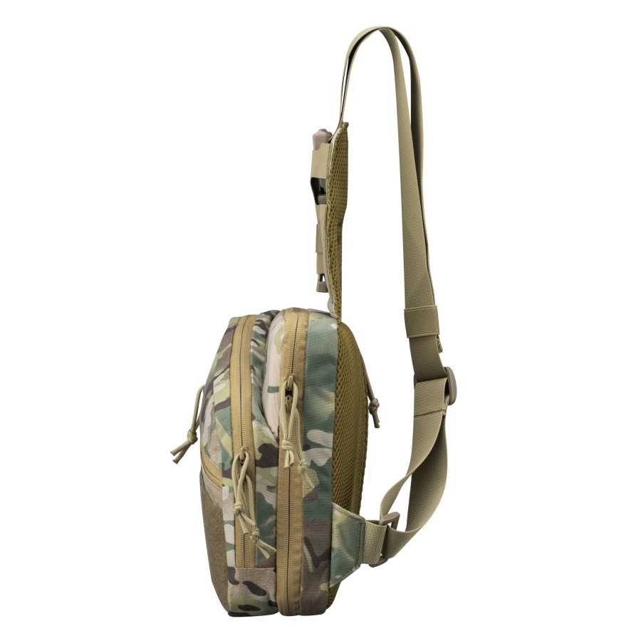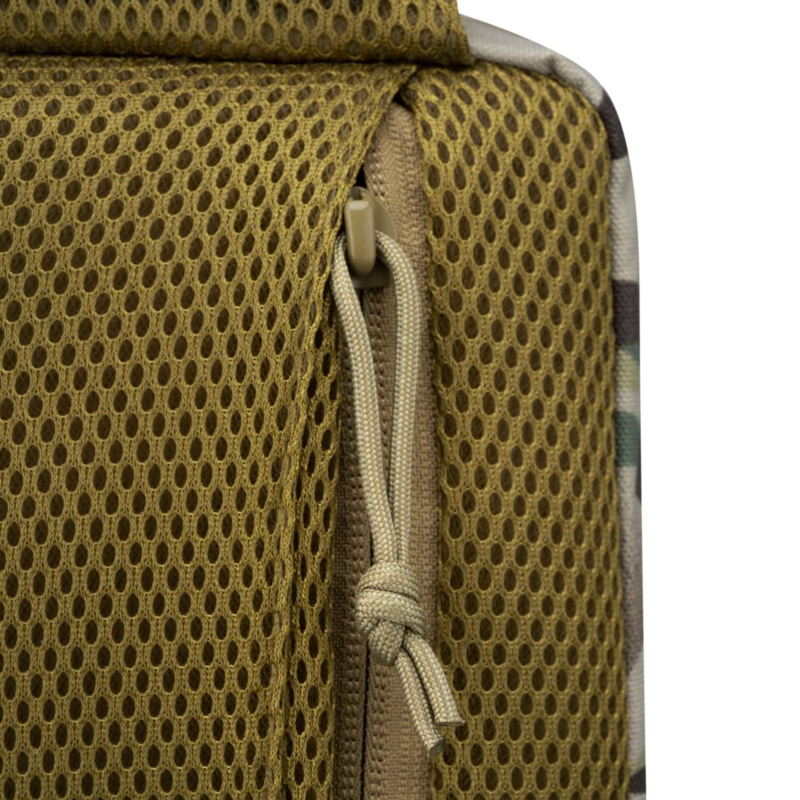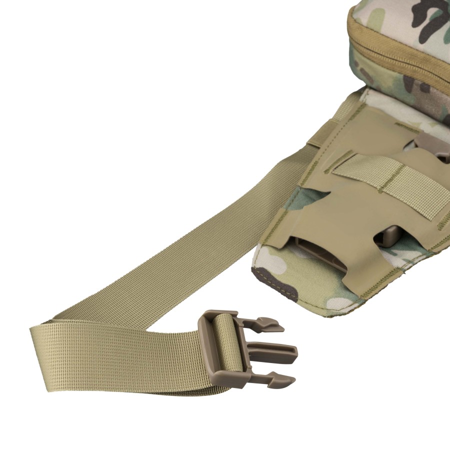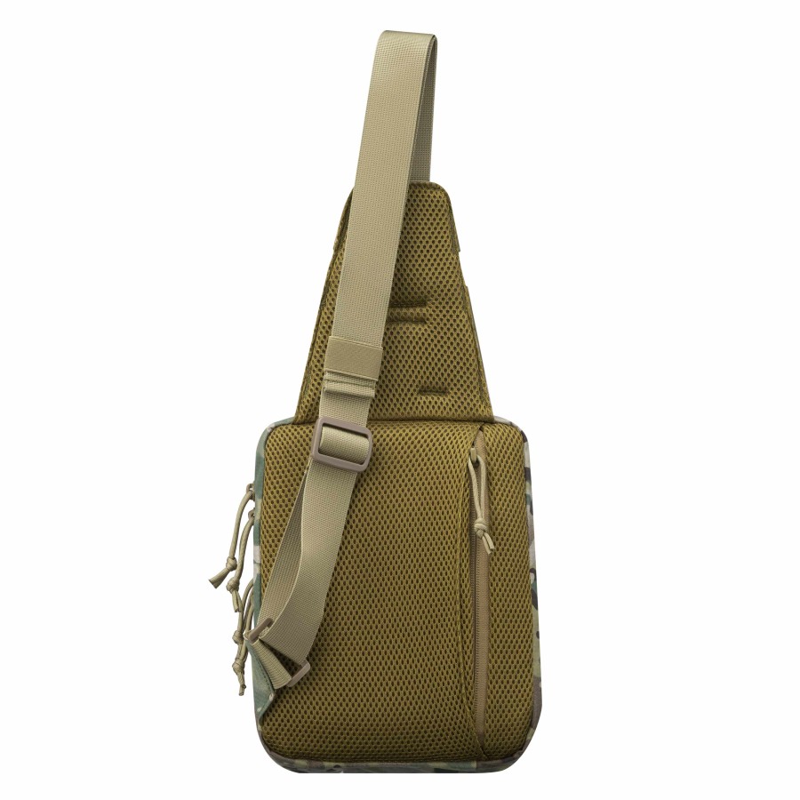 Основне відділення з velcro-панеллю всередині, що дає змогу прикріпити кобуру або модулі кріплення для магазинів. Додаткові відділення та кишені-органайзери згодяться для зберігання документів, портмоне, планшета та набора для виживання EDC. Регульований плечовий ремінець (від 80 до 120 см) і фастекс-карабін для швидкого скидання сумки забезпечують комфорт. Міцна поліуретанова панель-накладка, армована нейлоновими нитками, слугує додатковим запобіжником від випадкового відкривання.