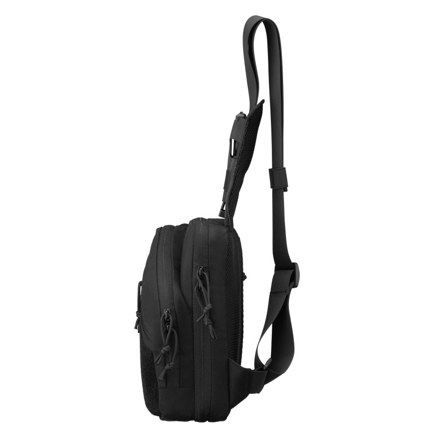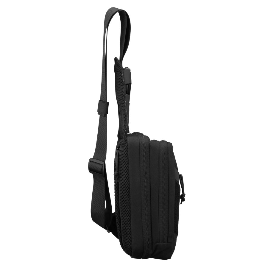Основне відділення з velcro-панеллю всередині, що дає змогу прикріпити кобуру або модулі кріплення для магазинів. Додаткові відділення і кишені-органайзери згодяться для зберігання документів, портмоне, планшета та набора для виживання EDC. Регульований плечовий ремінець (від 80 до 120 см) і фастекс-карабін для швидкого скидання сумки забезпечують комфорт. Міцна поліуретанова панель-накладка, армована нейлоновими нитками, слугує додатковим запобіжником від випадкового відкривання.