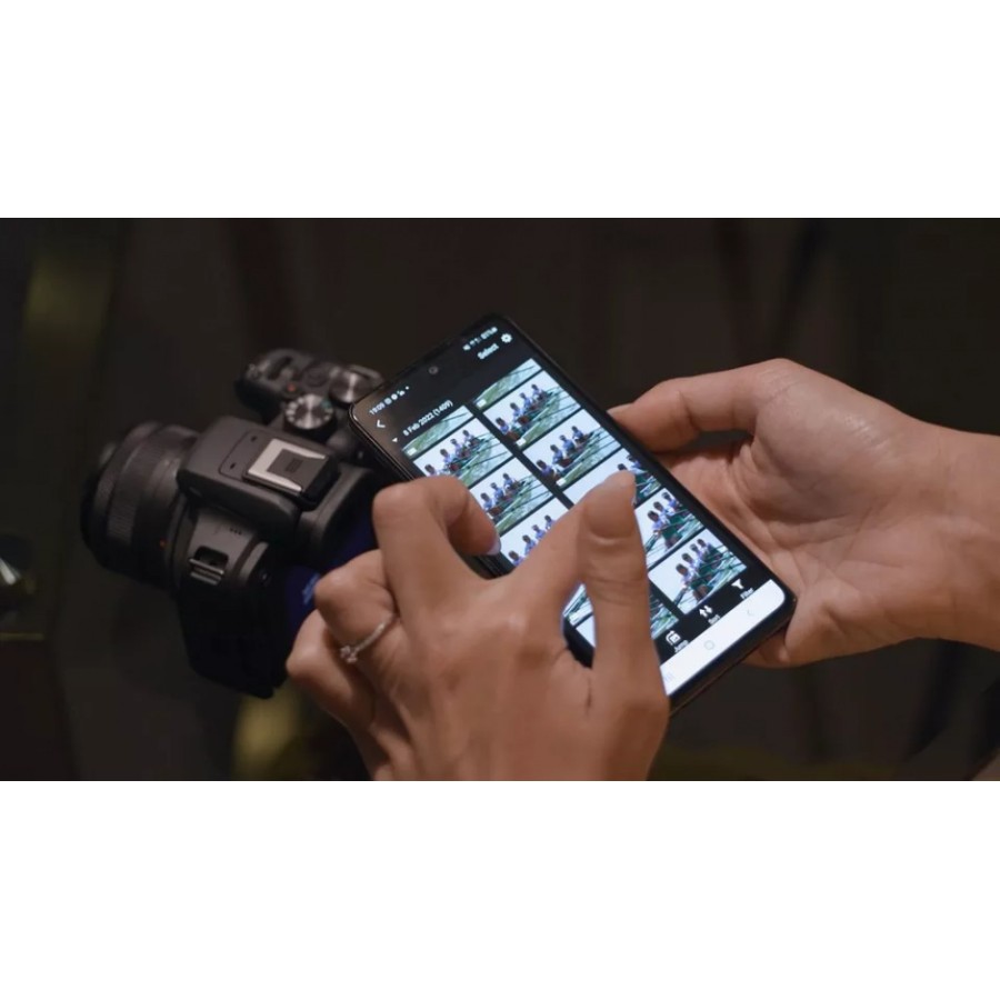 Вбудований модуль Bluetooth із низьким енергоспоживанням забезпечує постійне з’єднання, дозволяючи безперешкодно активувати канал Wi-Fi 2,4 ГГц, коли потрібно передати зображення. Крім того, камерою можна керувати дистанційно з розумного пристрою, на якому встановлено програму Canon Camera Connect: використовувати екран як видошукач, змінювати налаштування та знімати фото й відео. Для зручнішого дистанційного керування також доступний бездротовий Bluetooth-контролер BR-E1.