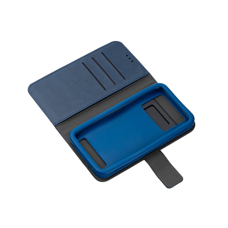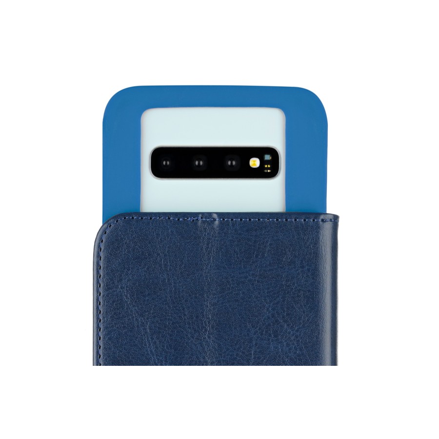 Зовні чохол виконаний із якісної гладкої PU шкіри, внутрішній шар з мікрофібри. Щільний силіконовий тримач для смартфона товщиною 2 мм стійкий до розтягування і щоденного зносу. Для зручного користування камерою є вбудований слайдер. Закритий чохол надійно фіксується магнітної застібкою. Чохол може бути використаний в режимі стенду для читання і перегляду відео. Усередині чохла зручне відділення для готівки і три слота для кредитних карт.