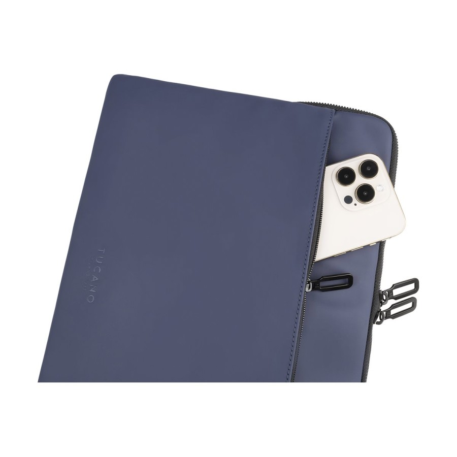 Водонепроникний чохол із прогумованого матеріалу Tucano Gommo для MacBook Air 15" або для ноутбуків 14". Чохол Gommo має одне м’яке відділення з вбудованими неопреновими кутовими клапанами, які призначені для захисту кутів ноутбука, а також зручну зовнішню кишеню для аксесуарів на блискавці.