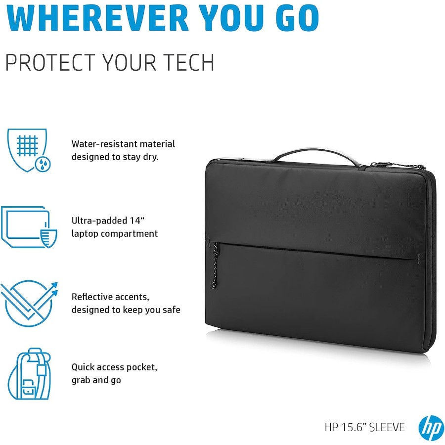 Чохол HP 15 Sleeve забезпечить надійний захист від дощу та сонячного світла. Спеціальне відділення з м'якою підкладкою для ноутбука з діагоналлю екрана до 39.62 см (15.6") захистить ваш пристрій від ударів і подряпин. Світловідбивні елементи підвищують безпеку в нічну пору. З кишені швидкого доступу зручно діставати необхідні предмети прямо на ходу.