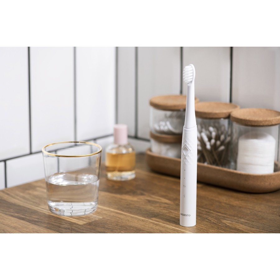 Електрична зубна щітка із середньою жорсткістю щетини забезпечує ефективне та безпечне чищення зубів із дбайливим ставленням до ясен і ротової порожнини. Ергономічна форма ручки робить процедуру зручною та приємною. Сучасна ультразвукова технологія чищення із частотою пульсації – 35 000 рухів на хвилину. Є три режими для різних потреб: стандартне чищення, для чутливих зубів і масаж ясен. Вибраний режим відображається за допомогою світлодіодного індикатора на корпусі.