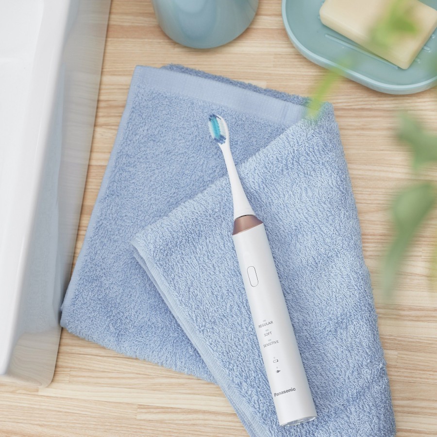 Компанія Panasonic розробила цю зубну щітку для ефективного догляду за зубоясневими кишенями, об’єднавши три унікальні функції: надтонкі щетинки, звукові вібрації лінійного двигуна та горизонтальні рухи щітки.