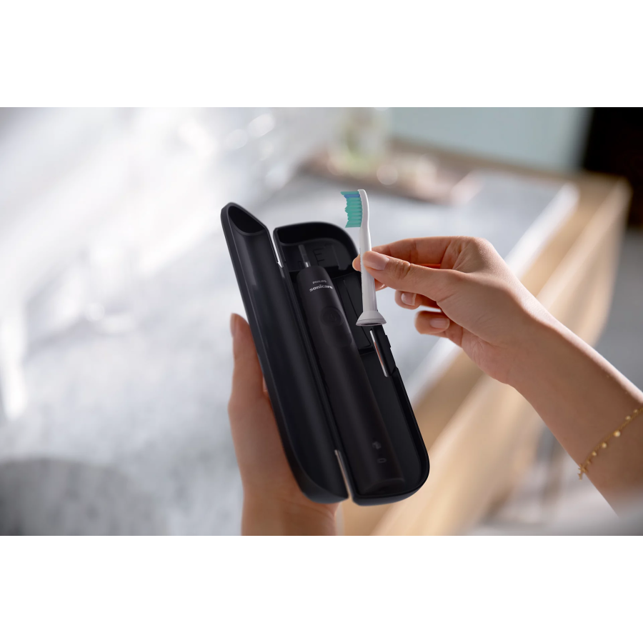 Клінічно доведено, що електрична зубна щітка Sonicare із вдосконаленою звуковою технологією видаляє втричі більше нальоту у порівнянні зі звичайною зубною щіткою*. Вона видаляє наліт із зубів та вздовж лінії ясен, водночас захищає ваші ясна.