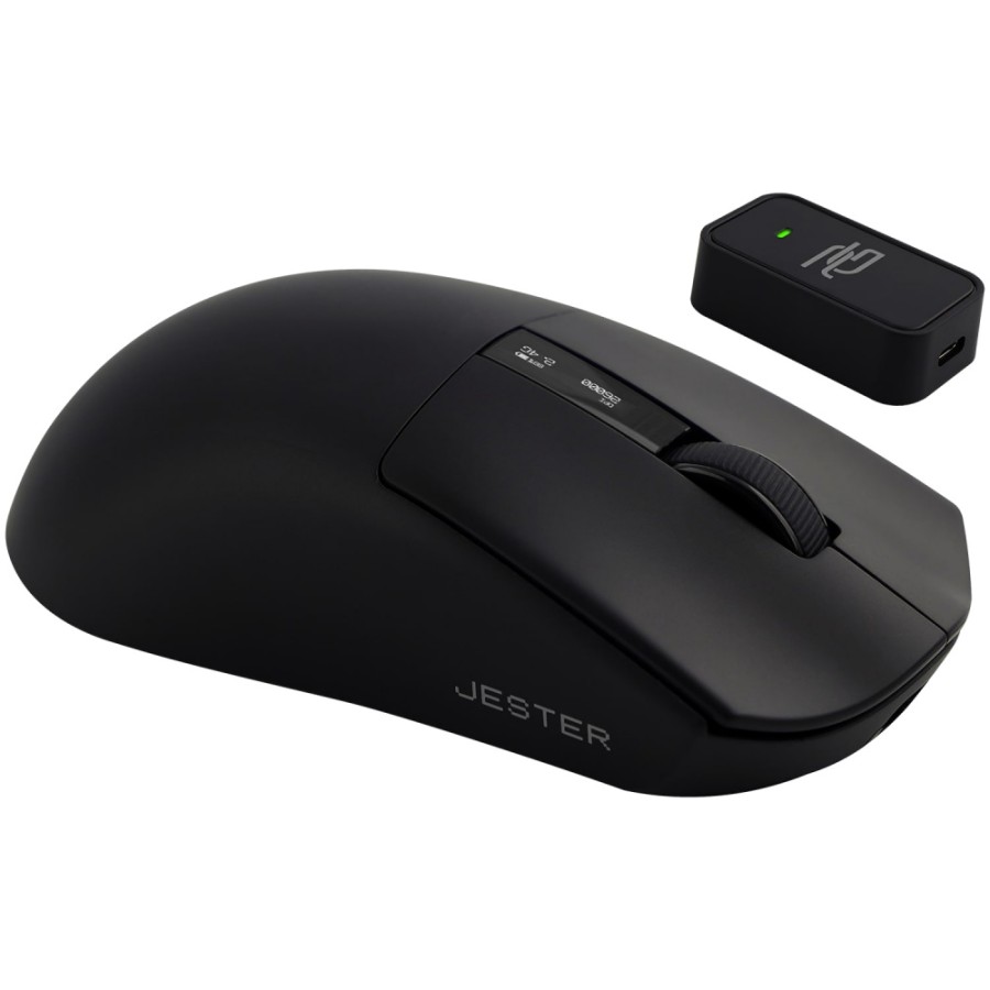 Завдяки частоті опитування до 8000 Гц (у дротовому та бездротовому режимах), чутливості до 26000 DPI і прискоренню 50G миша реагує миттєво на кожен рух. Вбудований OLED-дисплей дозволяє в реальному часі бачити DPI, заряд та тип підключення. Три варіанти підключення (2.4 ГГц, Bluetooth, USB) роблять Jester універсальною для будь-якої ситуації, а акумулятор на 500 мАг працює до 140 год на 1000 Гц або до 30 год на 8000 Гц.