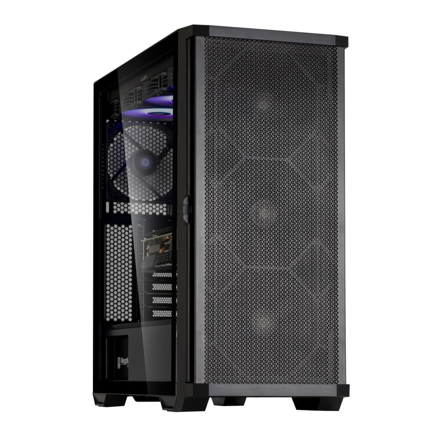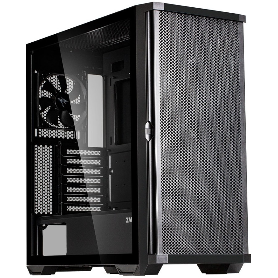 Матеріали: корпус виготовлений із міцної сталі 0,7мм із чорним покриттям. У корпусі немає гострих або невідшліфованих граней, що важливо при самостійному чи промисловому складанні. Передня панель – сітка для активної вентиляції. Бічна панель із загартованого 4 мм скла, закріплена без гвинтів. Панель не складно демонтувати та встановити.