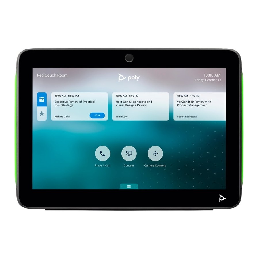 Керуйте відеодзвінками в кімнаті та ділитесь контентом одним дотиком. Або використовуйте її поза кімнатою, щоб перевірити вільні приміщення і вибрати кімнату, яку можна забронювати, без перешкод. Інтуїтивне керування та різнокольорове світлодіодне підсвічування дозволяють легко переглянути статус зустрічі та виявити відкриті простори здалеку. Незалежно від того, чи ви кріпите її на стіну, скло або розміщуєте на столі за допомогою гнучкої підставки, ви отримуєте максимальну продуктивність нарад.