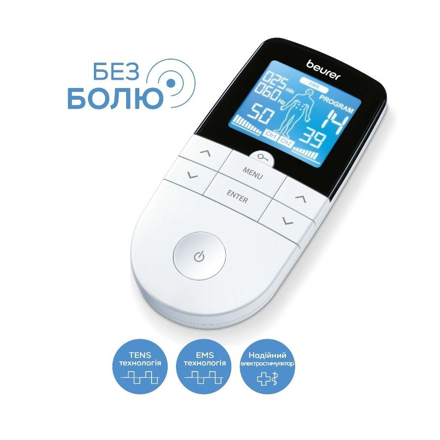 Електростимулятор Beurer для м'язів, 3*ААА, вага - 0.117кг, 35 програми, розслаблення, білий