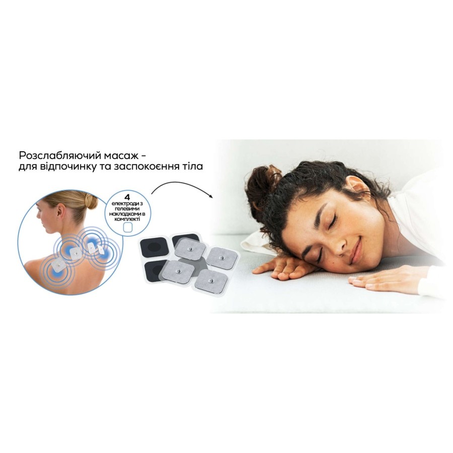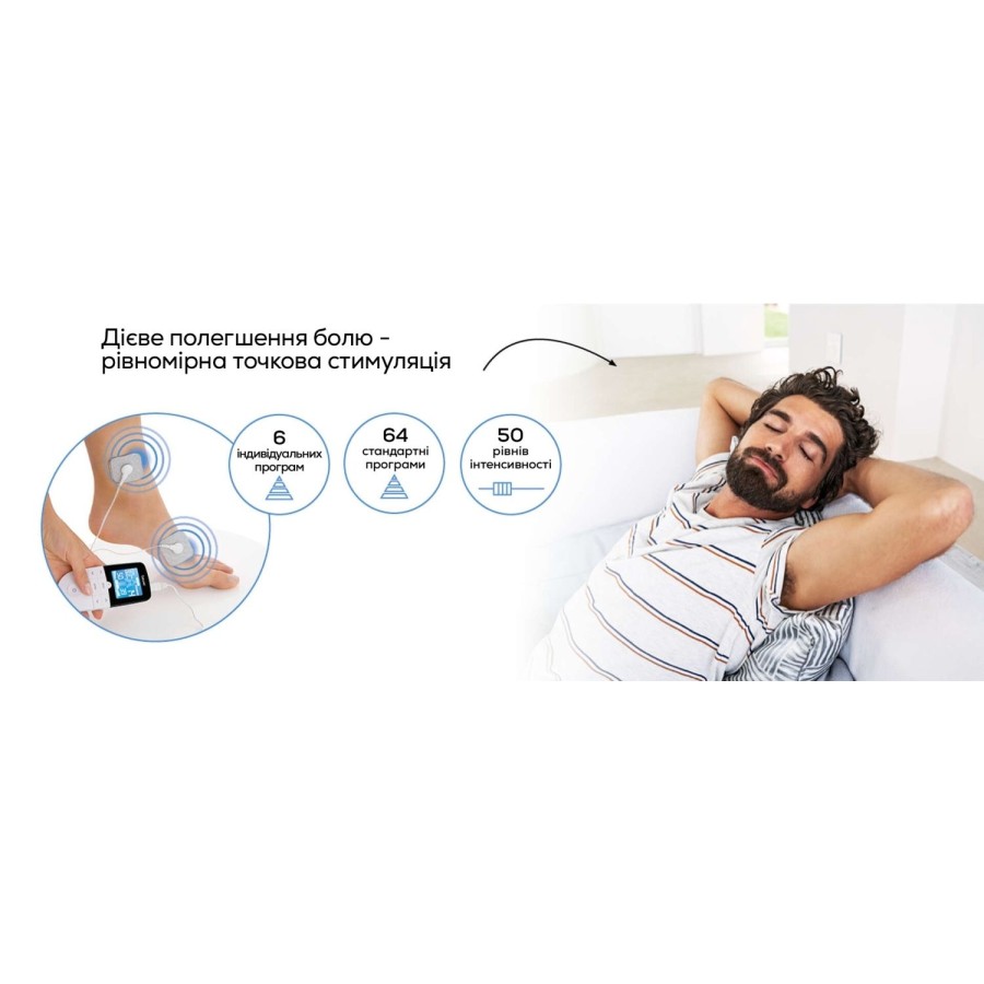Тренажер для цілеспрямованої стимуляції м'язів. Для універсального використання на різних ділянках тіла. У приладі є функції для поліпшення загального самопочуття, для зменшення болю, для підтримки гарної спортивної форми, для розслаблення, відновлення м'язів і боротьби з втомою. На вибір 70 програм м'язової електростимуляції.