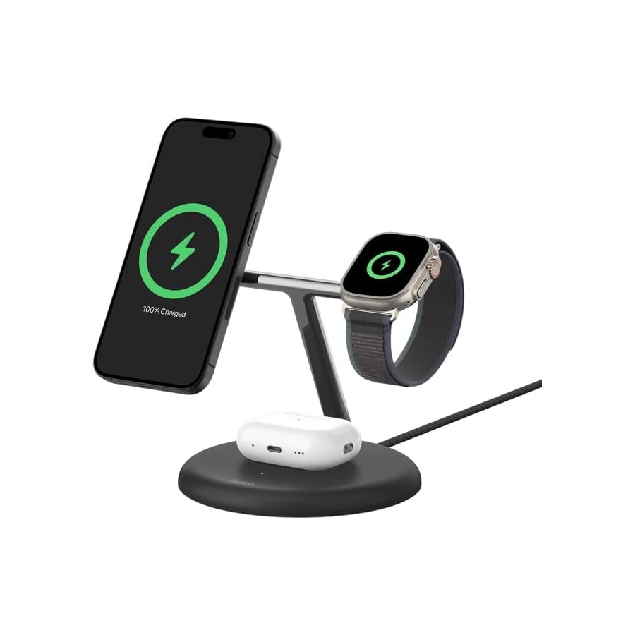 Belkin 3-в-1 Magnetic Qi2 – це ідеальне рішення для тих, хто шукає надійну, стильну та ефективну зарядну станцію для свого комплекту Apple!