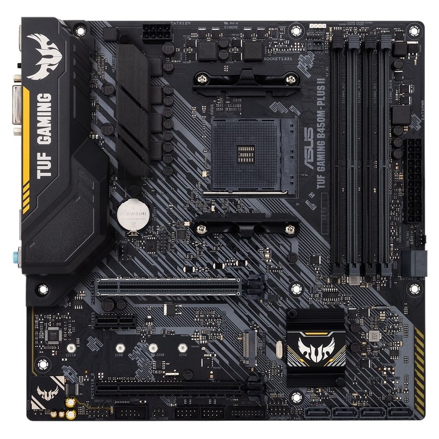 Материнська плата TUF GAMING B450M-PLUS II є відмінною основою для складання високопродуктивного геймерського ПК, яку доповнюють функції для підвищення ігрового комфорту: високошвидкісний мережевий контролер, який мінімізує затримки в онлайн-іграх, якісна аудіосистема, що поліпшує геймплей у шутерах, і вбудоване RGB-підсвічування, яке може бути синхронізовано із сумісними аксесуарами.