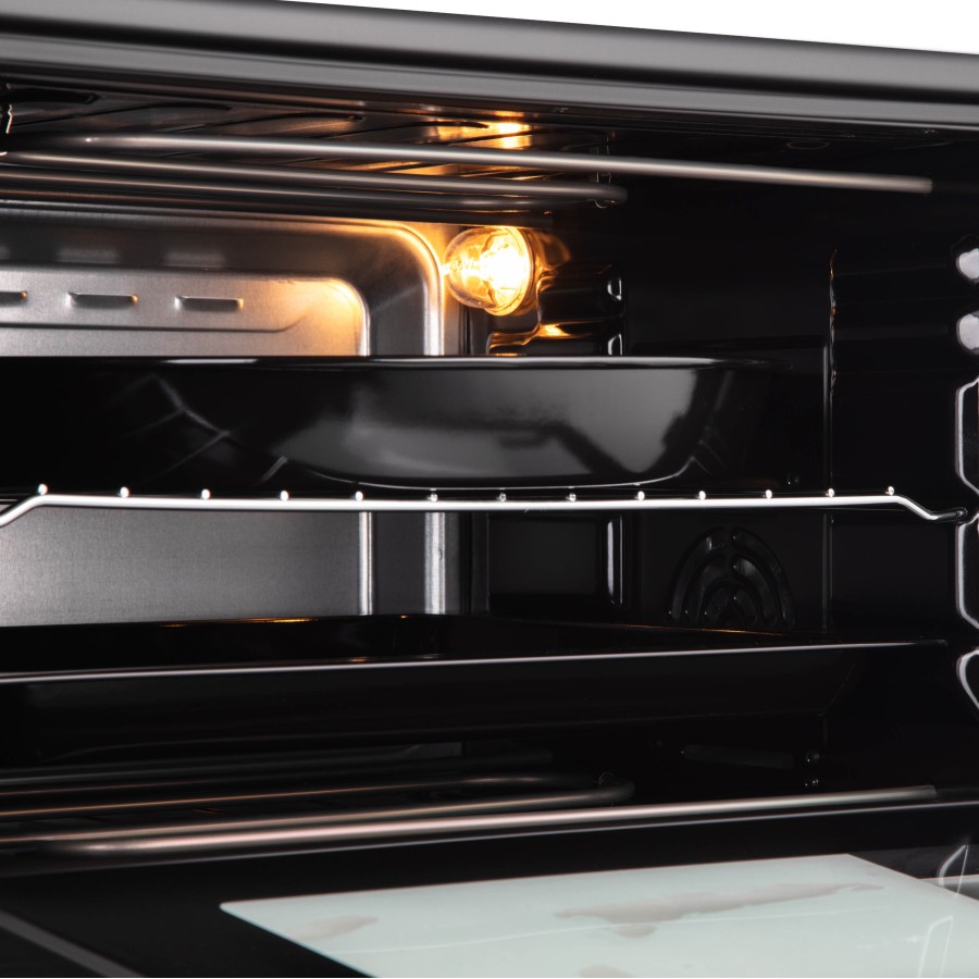 Піч має внутрішнє освітлення, що дає змогу спостерігати за процесом, а дверцята з міцного загартованого скла та поліпшена теплоізоляція гарантують безпеку. Хромовані нагрівальні елементи та емальована внутрішня камера – запорука тривалої експлуатації пристрою. У комплекті є прямокутне та кругле дека, а також решітка для гриля. Стійкість печі забезпечують нековзні ніжки.