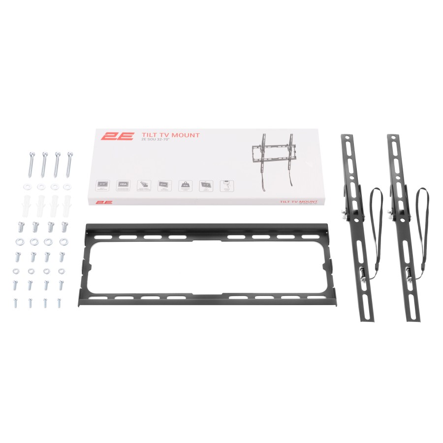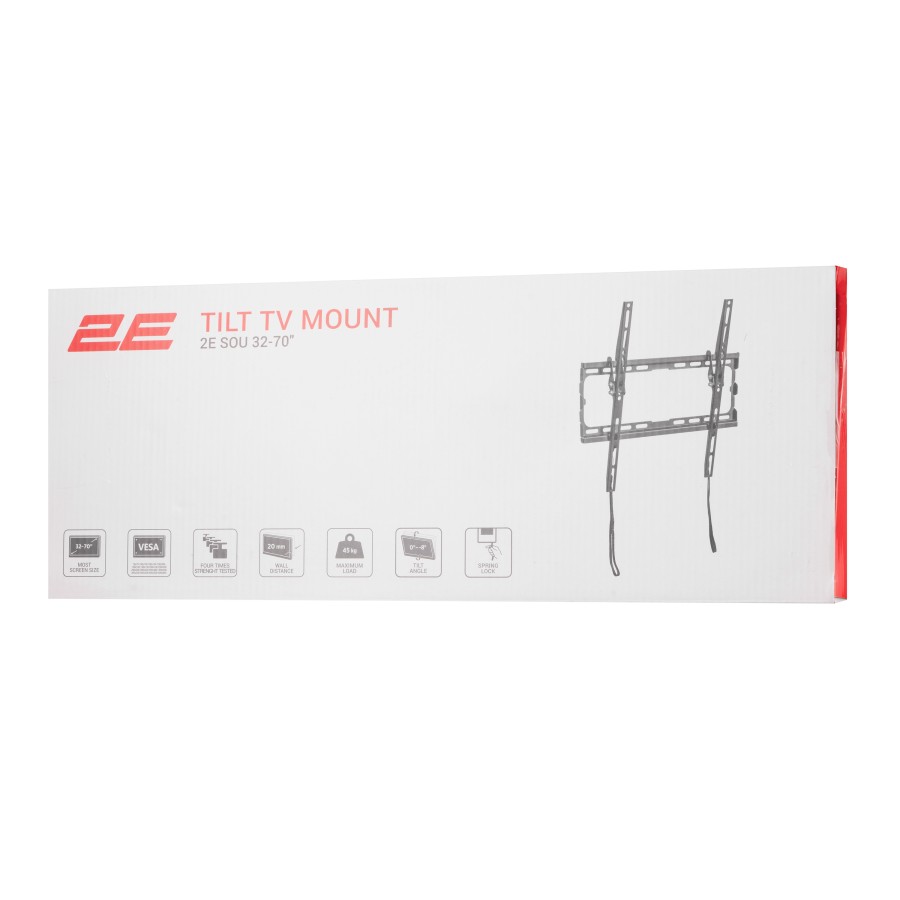 Кріплення з кутом нахилу для ТВ 32-70″ 32E «Соу» чорного кольору. Міцну конструкцію виготовлено зі сталі та пластику. Призначено для телевізорів діагоналлю 32-70″ і вагою до 45 кг. Зручний і надійний кронштейн сумісний із VESA 75 × 75, 100 × 100, 100 × 150, 100 × 200, 150 × 100, 150 × 150, 200 × 100, 200 × 200, 200 × 300, 200 × 400, 300 × 200, 300 × 300, 300 × 400, 400 × 200, 400 × 300, 400 × 400. Завдяки спеціальному механізму з регулюванням можна самостійно налаштовувати оптимальну позицію – нахил (0 – 8°). Розмір кронштейна 20 × 440 × 418 мм.