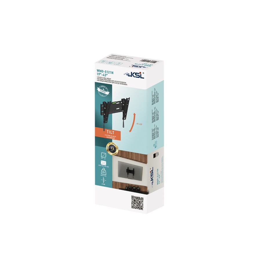 Настінний похилий кронштейн WMO-5121N. Що потрібно знати, щоб правильно підібрати кронштейн до телевізора? Діагональ екрану, вага телевізора та стандарт кріплення VESA - відстань між кріпильними отворами на задній панелі телевізора. Всю цю інформацію ви легко знайдете в характеристиках вашого телевізора, на упаковці або в інструкції. Кронштейн підходить для плазмових, LCD, LED телевізорів і моніторів з діагоналлю 19-43 дюйма і вагою до 25 кг. Підтримуваний стандарт VESA: від 75х75 мм до 200×200 мм.