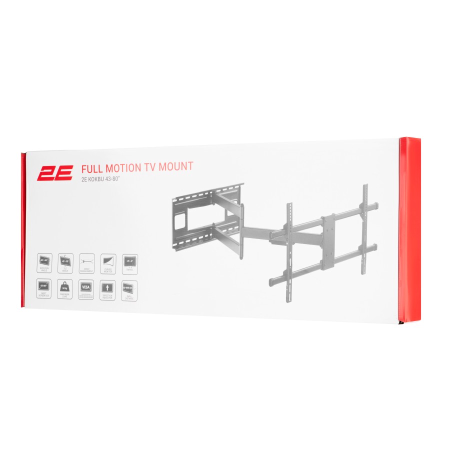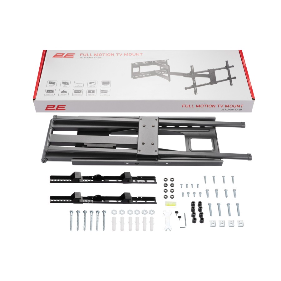 Завдяки спеціальному пружинному механізму з регулюванням можна самостійно налаштовувати оптимальну позицію – нахил (+5-15°), поворот (±90°), рівень (±3°). Повне розгинання – 376 мм. Розмір кріплення 1 015 × 885 × 430 мм.