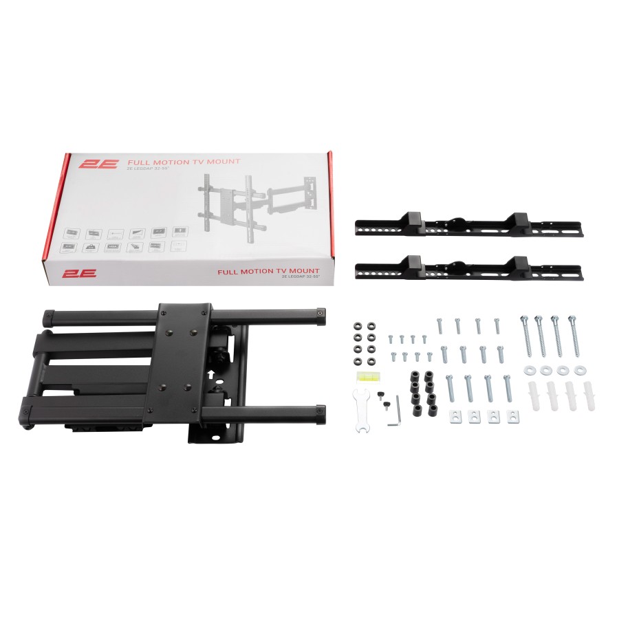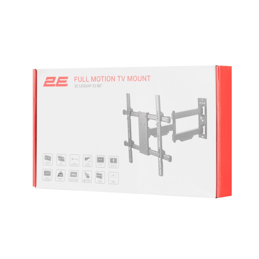 Завдяки спеціальному пружинному механізму з регулюванням можна самостійно налаштовувати оптимальну позицію – нахил (+5-15°), поворот (±90°), рівень (±3°). Повне розгинання – 376 мм. Розмір кріплення 615 × 485 × 430 мм.