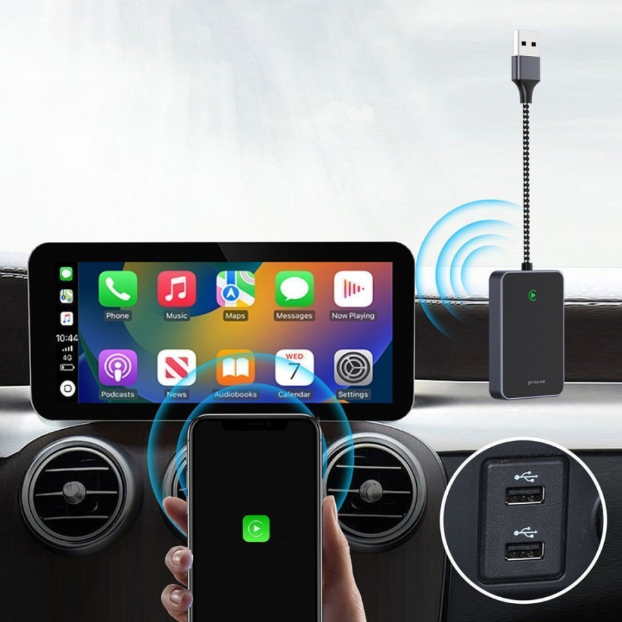 Proove СP-01 Wireless Car Adapte розширить функціонал вашого CarPlay до неймовірних можливостей. Адаптер забезпечує зручний, швидкий та безпечний доступ до функцій вашого телефона прямо під час поїздок.