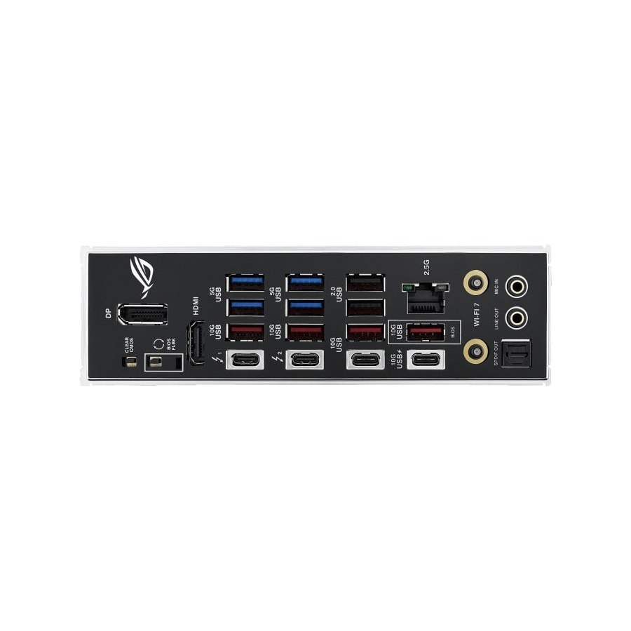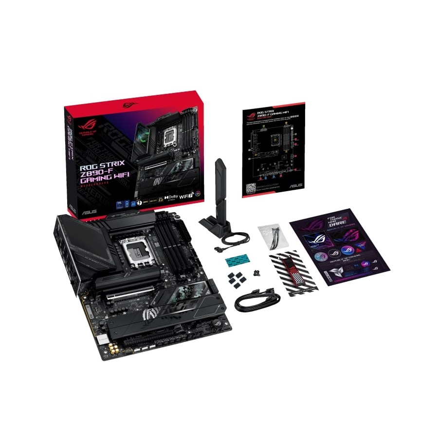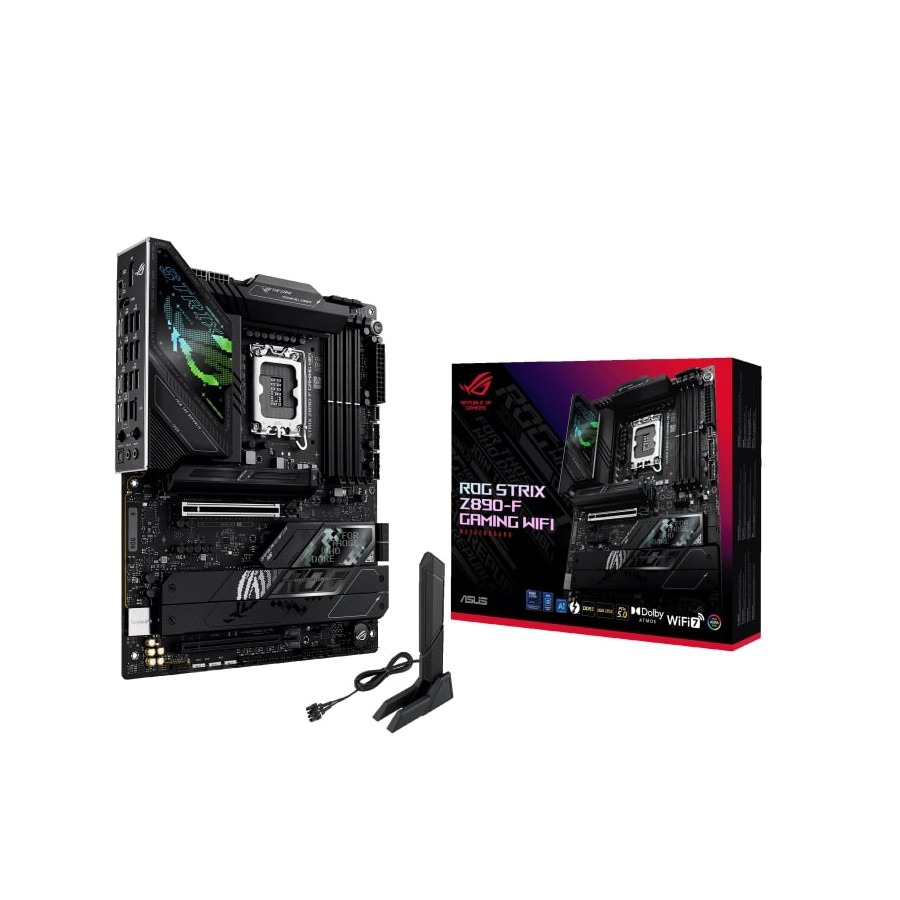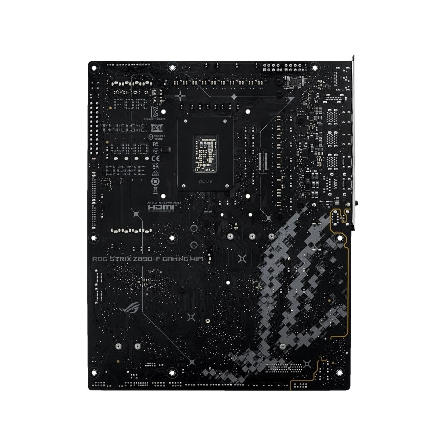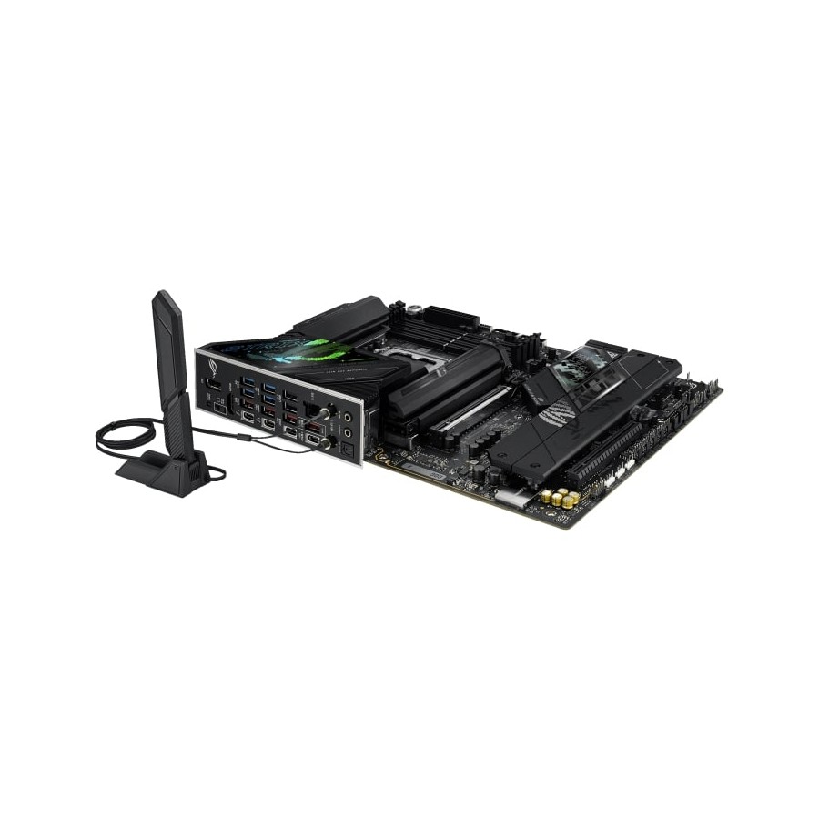 The ROG Strix Z890-F is sleek and understated for seamless integration with a wide range of system components. Its deep black surface and matching metallic heatsinks create a dark, intense look, while the Polymo lighting on the I/O shroud offers customizable RGB effects – so you can choose between a subtle appearance or a bold, eye-catching statement.