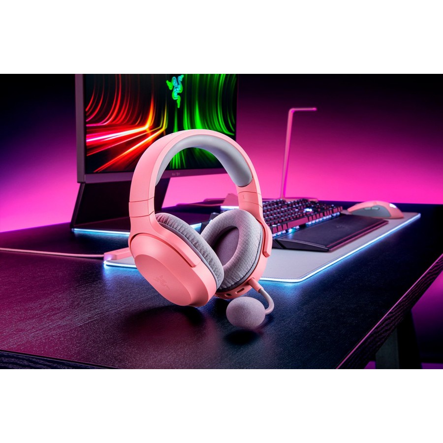 Одна гарнітура для всього. Razer Barracuda X - це універсальна, легка бездротова ігрова гарнітура, призначена для використання на ПК, PlayStation*, Nintendo Switch і Android.