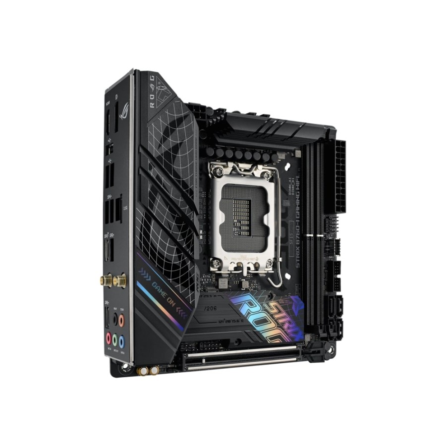ROG Strix B760-I використовує 8-фазну схему живлення та потужну систему охолодження для розкриття повної потужності процесорів Raptor Lake. Для збільшення FPS в іграх вона пропонує слот PCIe 5.0, призначений для встановлення сучасної відеокарти, а також слоти пам’яті, що підтримують швидкісну оперативну пам’ять DDR5.