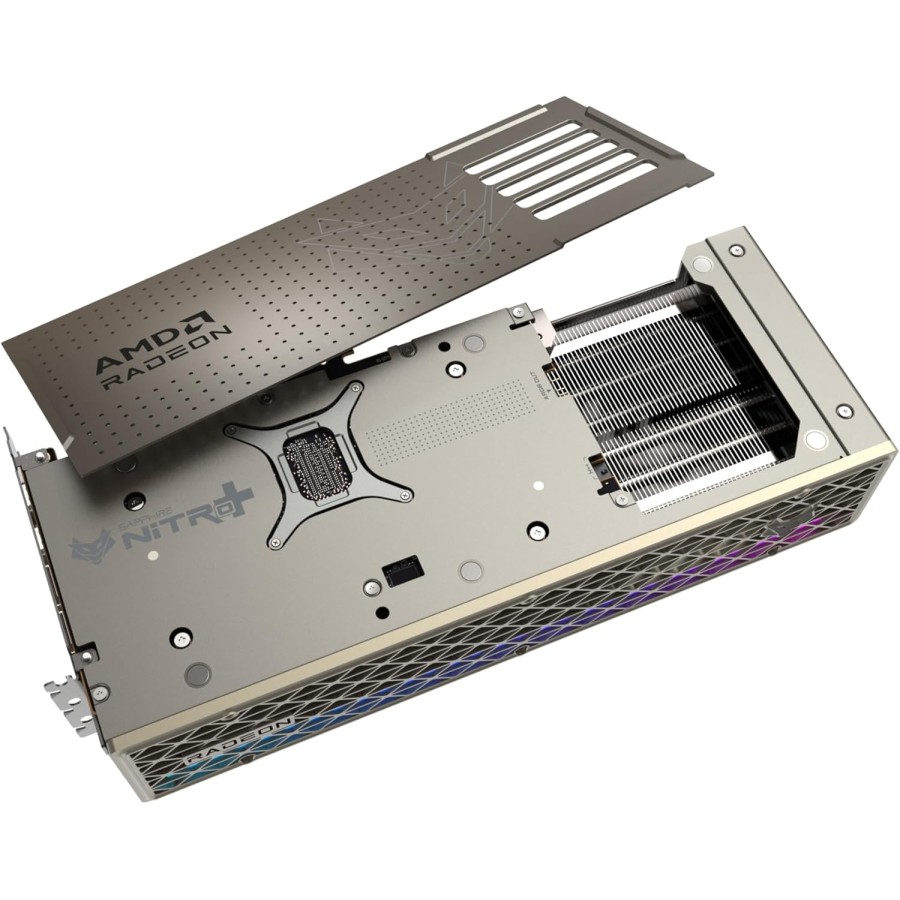 Оцініть чудовий і красивий корпус відеокарти NITRO+ AMD Radeon RX 9070 XT з рамою з холоднокатаної сталі, яка зміцнює структуру кожуха та довговічність, а також закриває бокові сторони друкованої плати для міцного захисту разом із суцільнометалевою задньою панеллю.