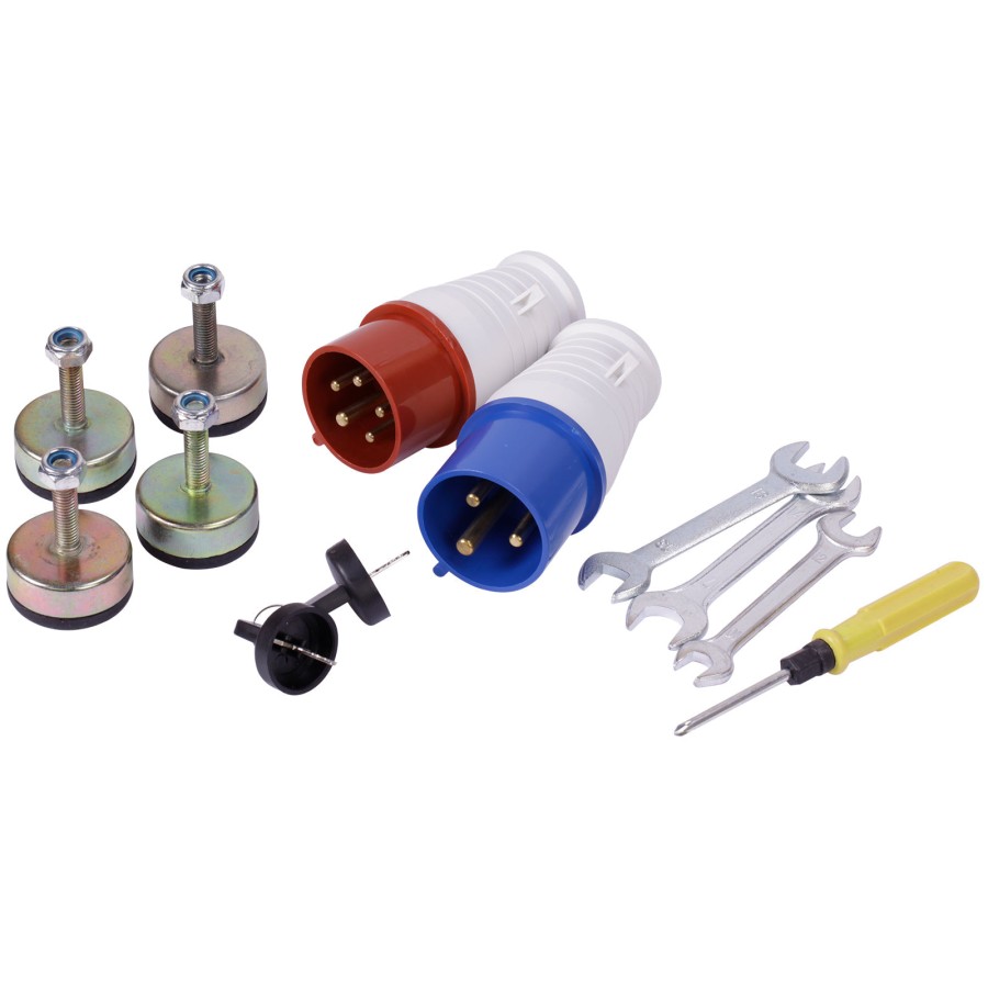 Генератор укомплектований додатковими аксесуарами: силова переносна вилка 3Р+Е+N, 16А, 400В, силова переносна вилка 2P+Е, 32А, 230В, ключ ріжковий 8×10 мм, ключ ріжковий 12×14 мм, ключ ріжковий 17×19 мм, викрутка двостороння 6.0 мм РН2.