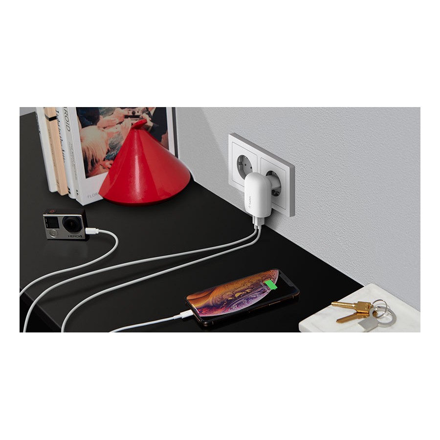 Наш зарядний пристрій з двома портами надає вам оптимізоване рішення для заряджання різних пристроїв, таких як iPhone, а також пристроїв Samsung та інших виробників. Він сертифікований за стандартом USB-C PD 3.0 і оснащений технологією PPS для оптимального заряджання — до 20 Вт для iPhone 12, 18 Вт для iPhone 8 - iPhone 11 і 25 Вт для Galaxy S21 Ultra 5G.