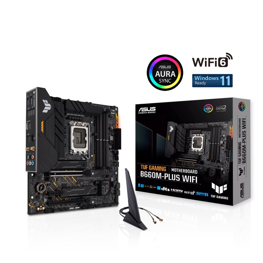 Материнські плати TUF GAMING B660M є відмінною основою для складання високопродуктивного геймерського ПК, яку доповнюють функції для підвищення ігрового комфорту: високошвидкісний мережевий контролер, який мінімізує затримки в онлайн-іграх, якісна аудіосистема, що поліпшує геймплей у шутерах, і вбудоване RGB-підсвічування, яке може бути синхронізовано із сумісними аксесуарами.