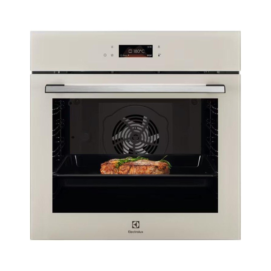 Electrolux LOE8F38S — це преміальна вбудована електрична духова шафа об’ємом 72 л, виконана у витонченому кольорі шампань з бежевим склом, що додає кухні елегантності. Сенсорне керування EXCite та зручний TFT-дисплей дозволяють легко налаштувати температуру (30–300 °C), час і режим. Завдяки SurroundCook® конвекції та електричному грилю ваша їжа готується рівномірно, без потреби перевертати страви.