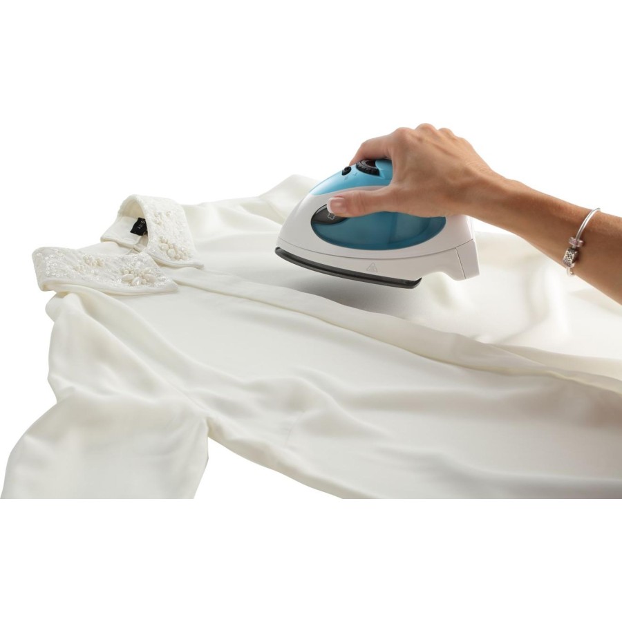 Система подвійної напруги: напруга 240 В і 120 В, а також компактний розмір праски, роблять її ідеальним приладом для використання в дорозі або в гуртожитку. Завдяки загостреному кінчику легко прасувати частини навколо ґудзиків, комірців, складок, манжет і лацканів.