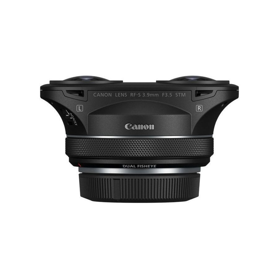Об’єктив Canon RF 3.9mm f/3.5 Dual Fisheye відкриває нові можливості для VR-контенту завдяки двом надширококутним "риб’яче око" (fisheye) об’єктивам, інтегрованим в одне тіло. Кожен з них покриває 180°, що дозволяє формувати стереоскопічне 3D-відео з полем зору 180°x180°, ідеальне для VR-гарнітур.