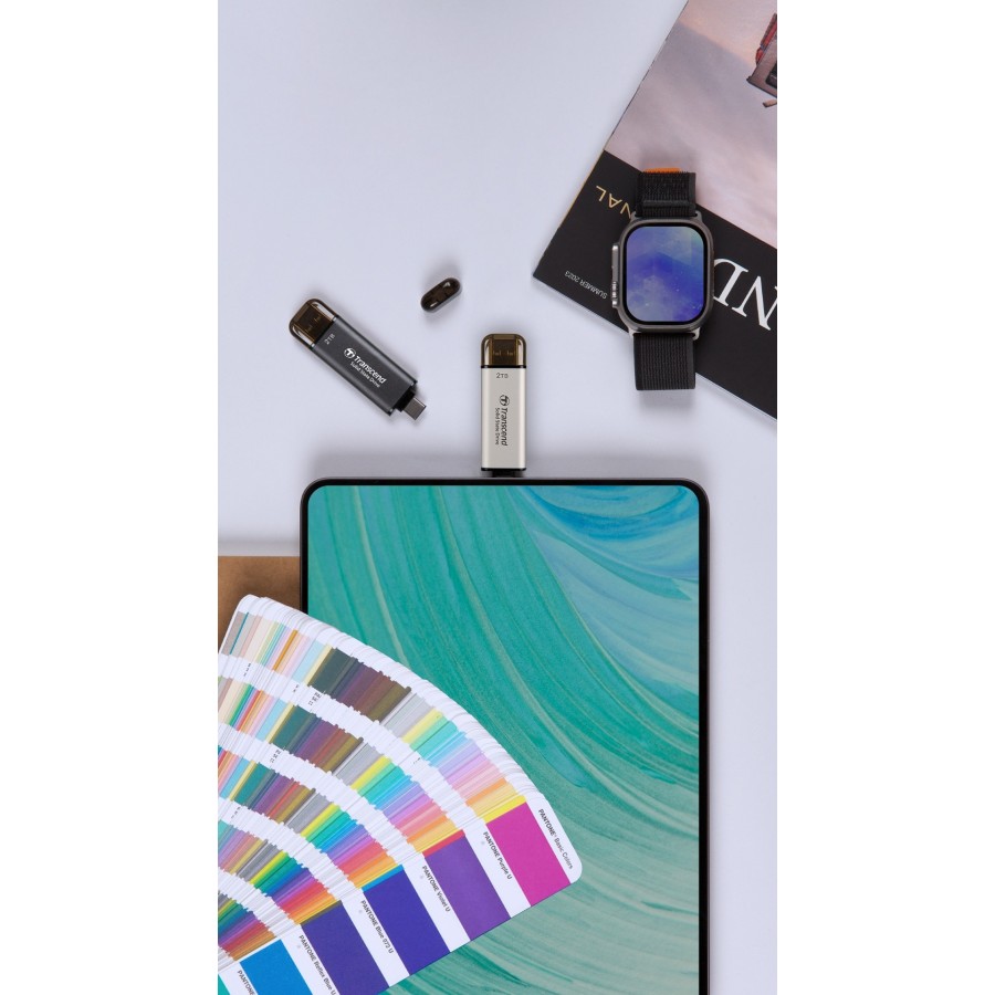 Transcend ESD310 512 GB — надкомпактний зовнішній SSD з об’ємом 512 ГБ, що підтримує USB 3.2 Gen 2 з максимальною швидкістю передачі даних до 10 Гбіт/с. Читання до 1050 МБ/с і запис до 950 МБ/с забезпечуються завдяки технології SLC-кеша і 3D NAND. Форм‑фактор «флешки» з двома конекторами (USB-A і USB-C) значно спрощує використання на різних пристроях.