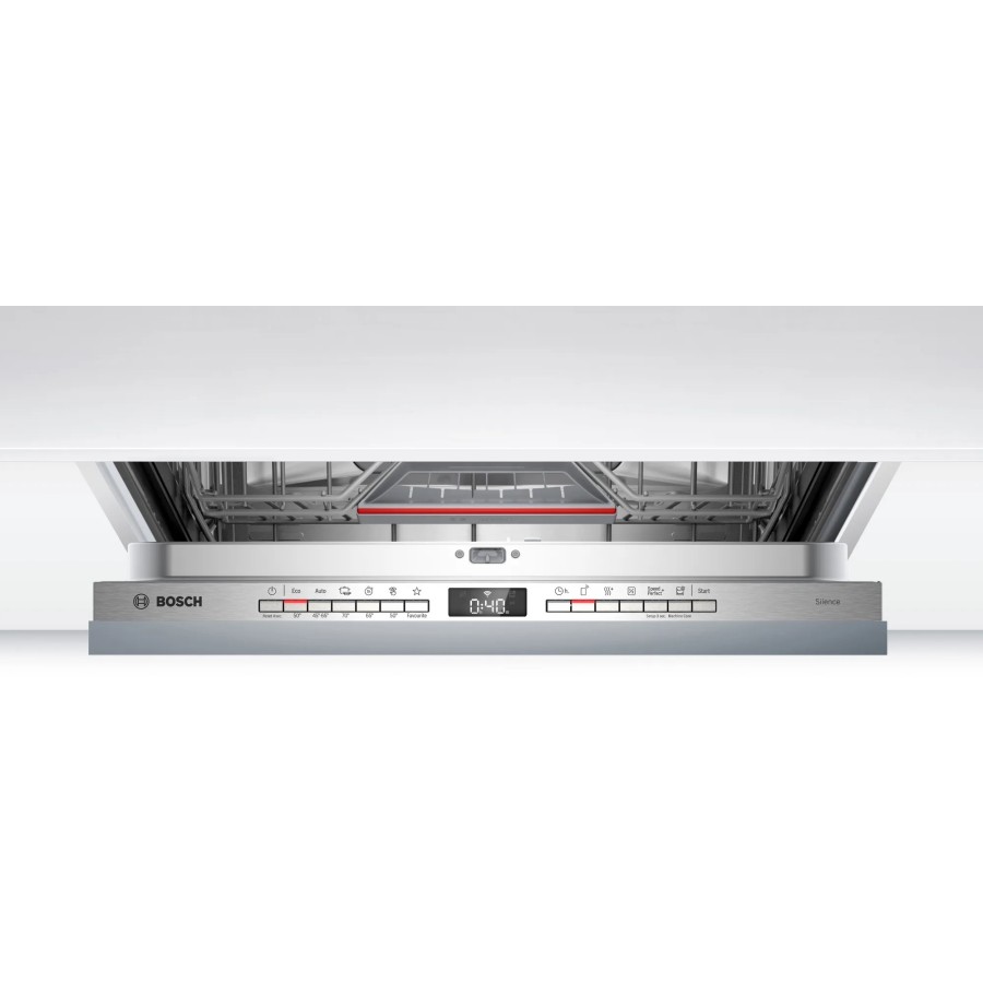 Місткий верхній короб можна регулювати за висотою в цілому на 5 см між трьома положеннями простим рухом руки – завдяки системі RackMatic. Тарілки для піци чи фужери на високій ніжці — ця система дозволяє дуже гнучко створити додаткове місце для високих предметів посуду у верхньому або нижньому коробі.