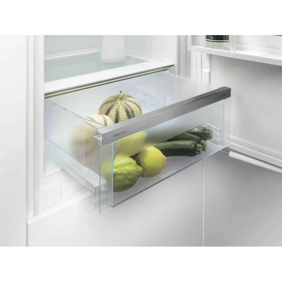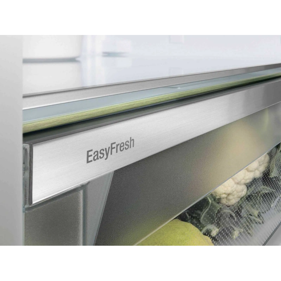Завдяки вбудованим направляючим та обмежувачу висування, відділення EasyFresh легко відкривається й зачиняється. Ще одна перевага: конструкція направляючих рейок гарантує щільнысть закриття відділення. Тому охолоджені продукти завжди зберігаються в оптимальних умовах.