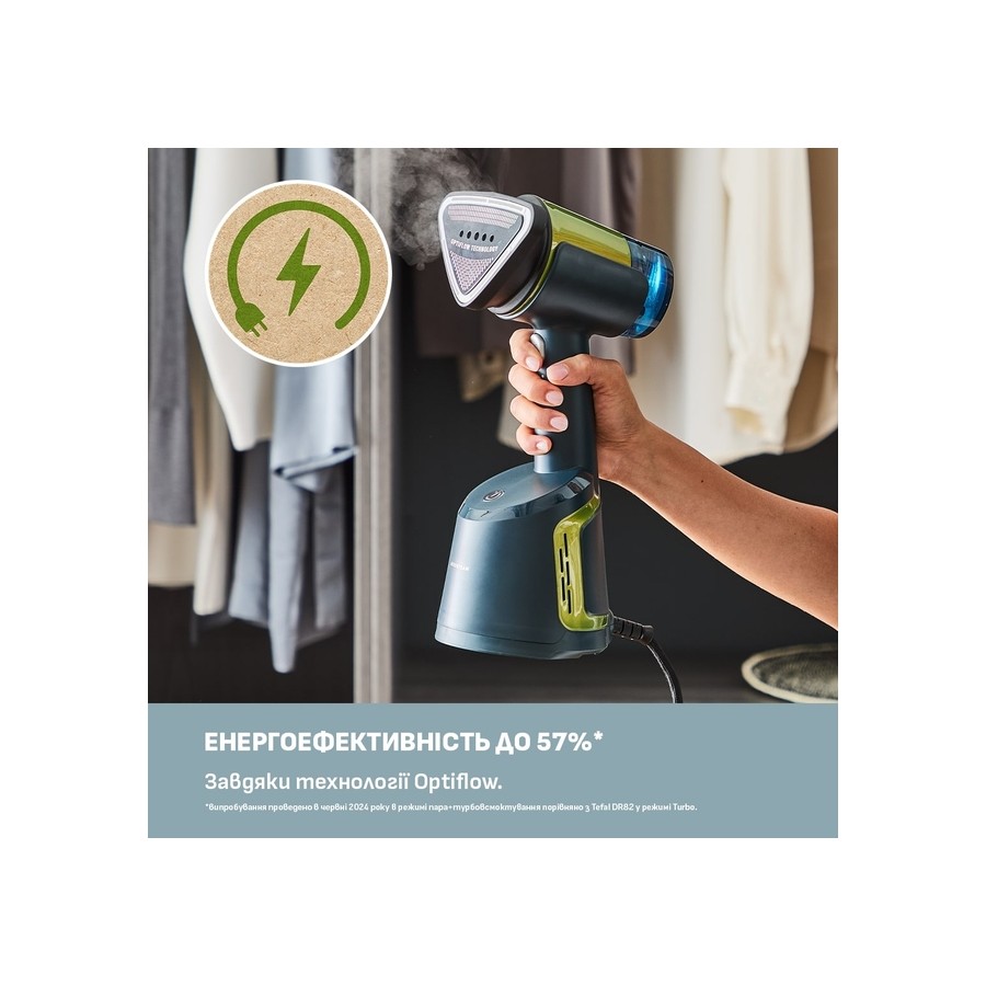 Відпарювач Tefal компактний Duo Power 2в1, 1700Вт, 400мл, паровий удар -180гр, постійна пара - 25гр, керам. підошва, світло-зеле
