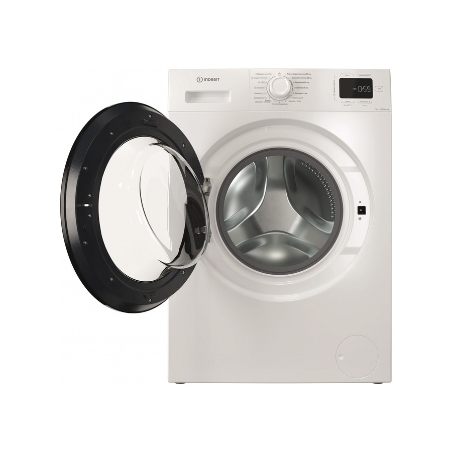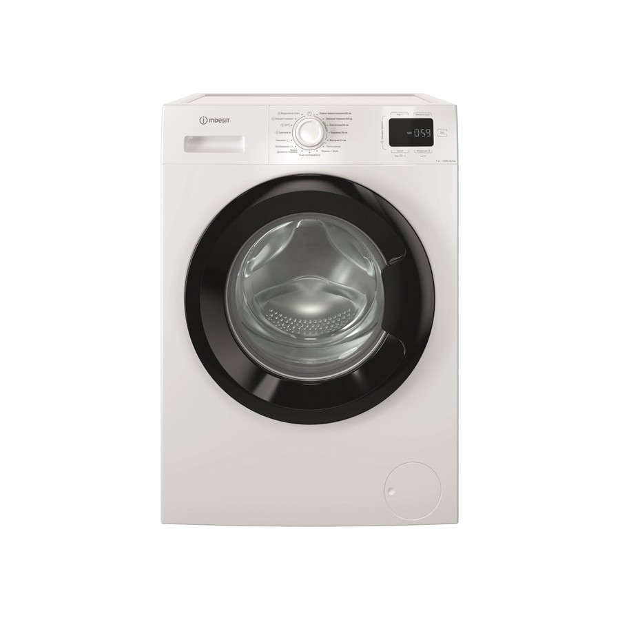 Пральна машина Indesit фронтальна, 7кг, 1200, A+++, 49.6см, дисплей, пара, інвертор, люк чорний, білий (IM712BMYTIMEUA)