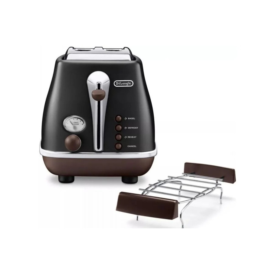 DeLonghi CTOV2103BK Icona Vintage — це поєднання класичного італійського стилю та сучасної функціональності. Тостер оснащений двома широкими слотами, що підходять як для тонких, так і для товстих шматків хліба. Потужність 900 Вт дозволяє швидко підсмажувати тости до бажаного ступеня золотистості.