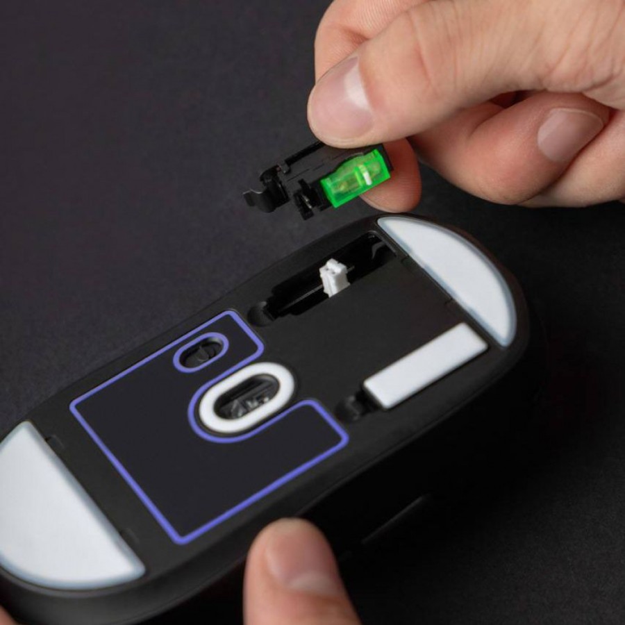 Сенсор PAW3950 підтримує чутливість до 32000 DPI і прискорення 50G. Частота опитування до 8000Гц у бездротовому режимі (до 46 год автономної роботи) та 1000Гц у дротовому (до 136 год). А ще тут є Hot Swap — можливість швидко змінювати перемикачі без викрутки. Миша сумісна з усіма сучасними платформами й має 3 типи підключення: 2.4 ГГц, Bluetooth і USB.