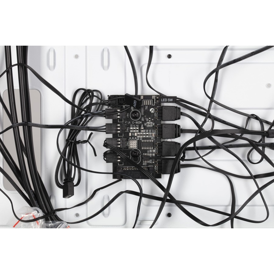 Для підключення, керування та контролю за комп'ютерною периферією та підсвічуванням, в арсеналі корпусу є роз'єми 2xUSB 3.0,1xUSB 2.0 HD AUDIO+MIC, кнопки та індикатори Power, Reset, Power LED, HDD LED, додатково ARGB концентратор з можливістю підключення до материнської плати.