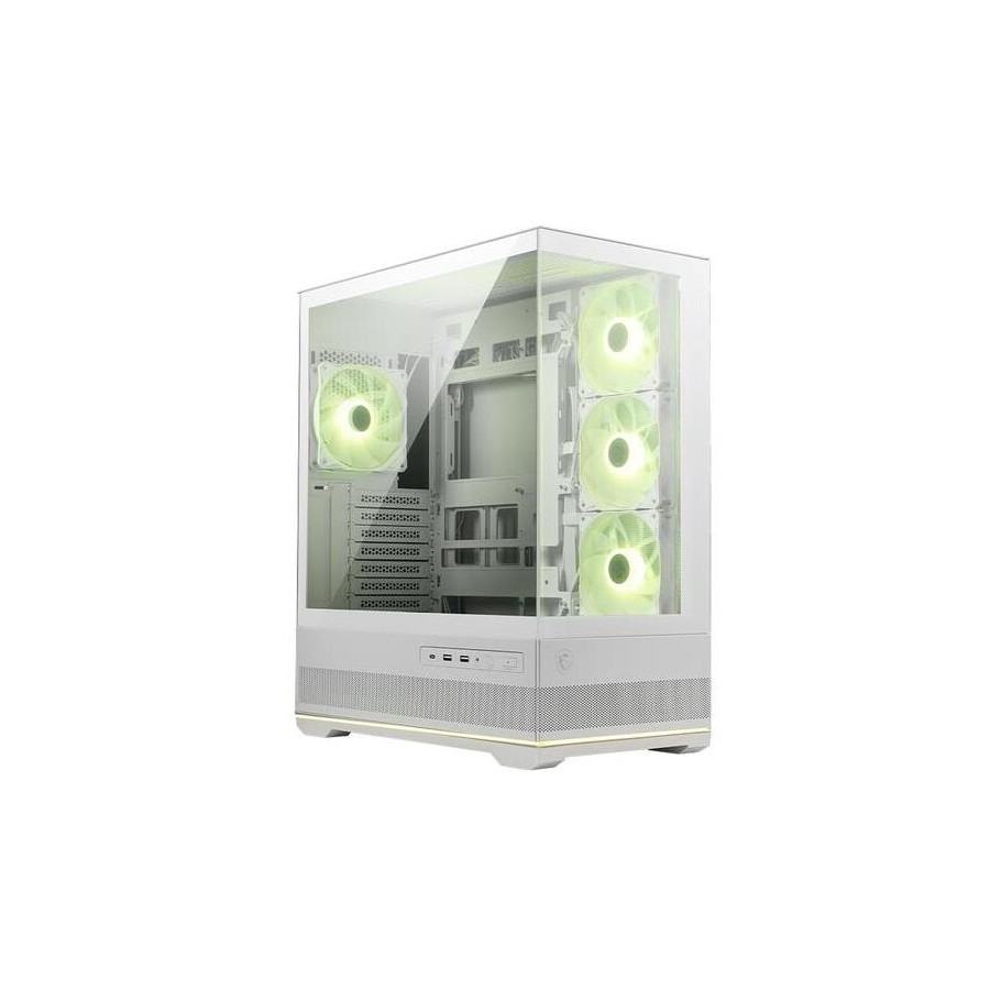 MSI MAG PANO 110R PZ WHITE — це корпус формату Mid-Tower, який поєднує естетику білого кольору з функціональністю панорамного огляду. Завдяки 270-градусному дизайну з загартованого скла, корпус відкриває повний огляд на внутрішні компоненти, підкреслюючи кожну деталь збірки.
