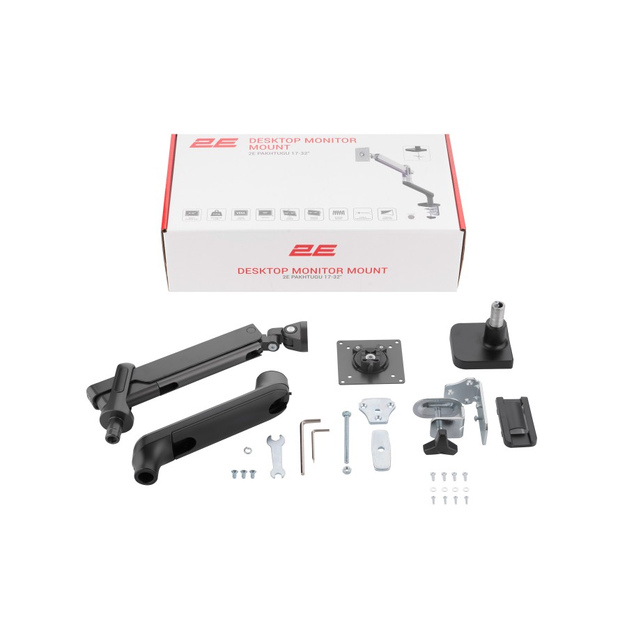 За допомогою системи прокладання кабелю, можна зібрати всі кабелі разом, організувавши порядок на робочому місці. Завдяки спеціальному пружинному механізму з регулюванням можна самостійно налаштовувати оптимальну позицію – нахил (±40°), поворот (±90°), обертання (±180°). Повне розгинання – 465 мм. Розмір кріплення 115 × 550 × 630 мм.