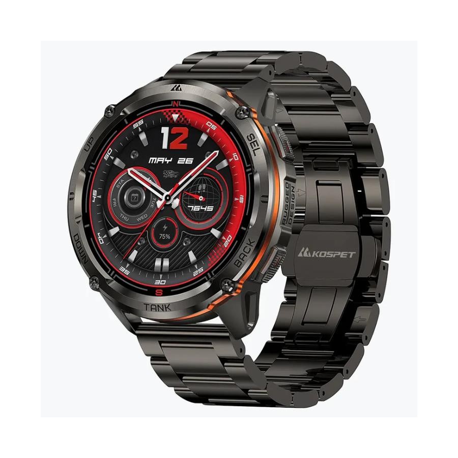 KOSPET TANK T3 ULTRA 2 Black — це втілення витривалості, точності та сучасного дизайну. Його корпус із нержавіючої сталі, захисне скло Corning® Gorilla® Glass і відповідність 15 військовим стандартам MIL-STD-810H роблять цей годинник надійним супутником у найекстремальніших умовах. Він пройшов 28 внутрішніх тестів, що підтверджують його стійкість до ударів, пилу, води, температурних перепадів і високого тиску.