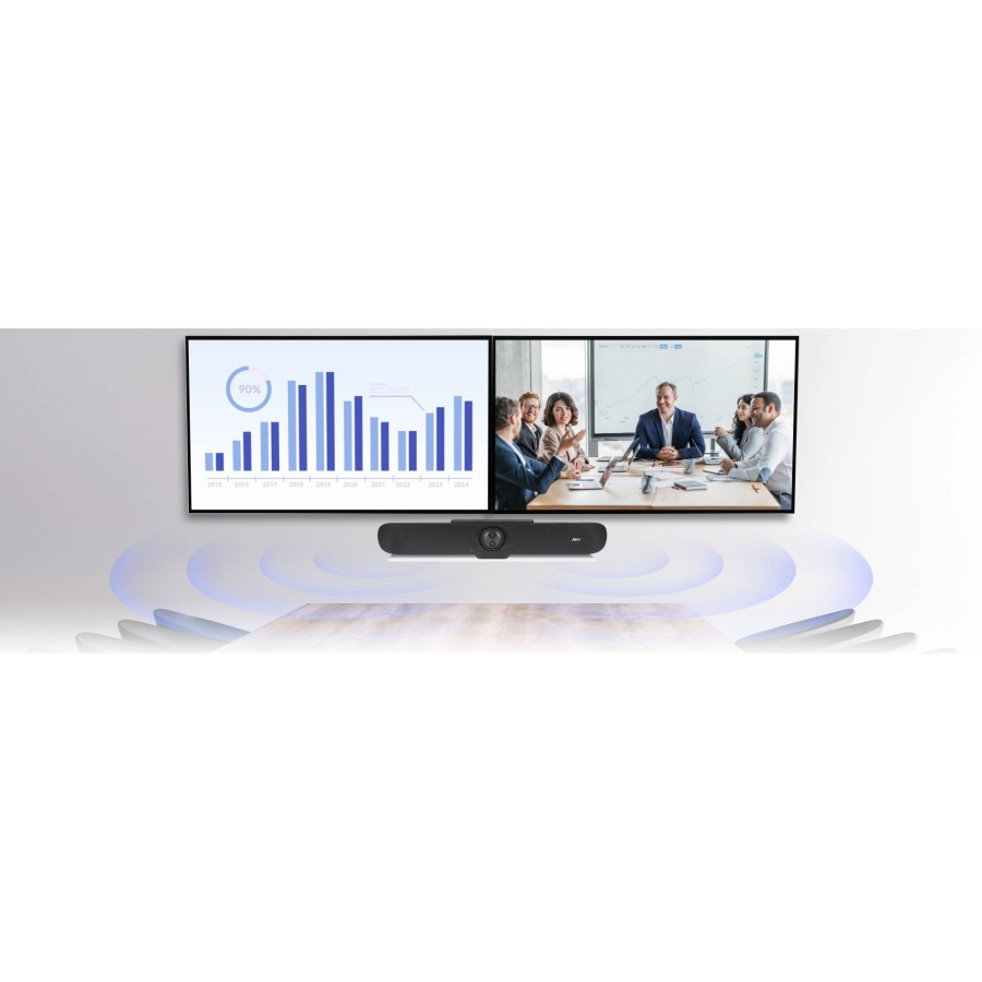 Підтримка двох екранів та передові візуальні ефекти 4K розширюють можливості системи. Миттєве налаштування та елегантний дизайн VB370A роблять його оптимальним доповненням до будь-якого сучасного робочого простору. Переглядаючи доповідача та контент на двох екранах одночасно, учасники можуть поринути у зустріч та підвищити продуктивність.