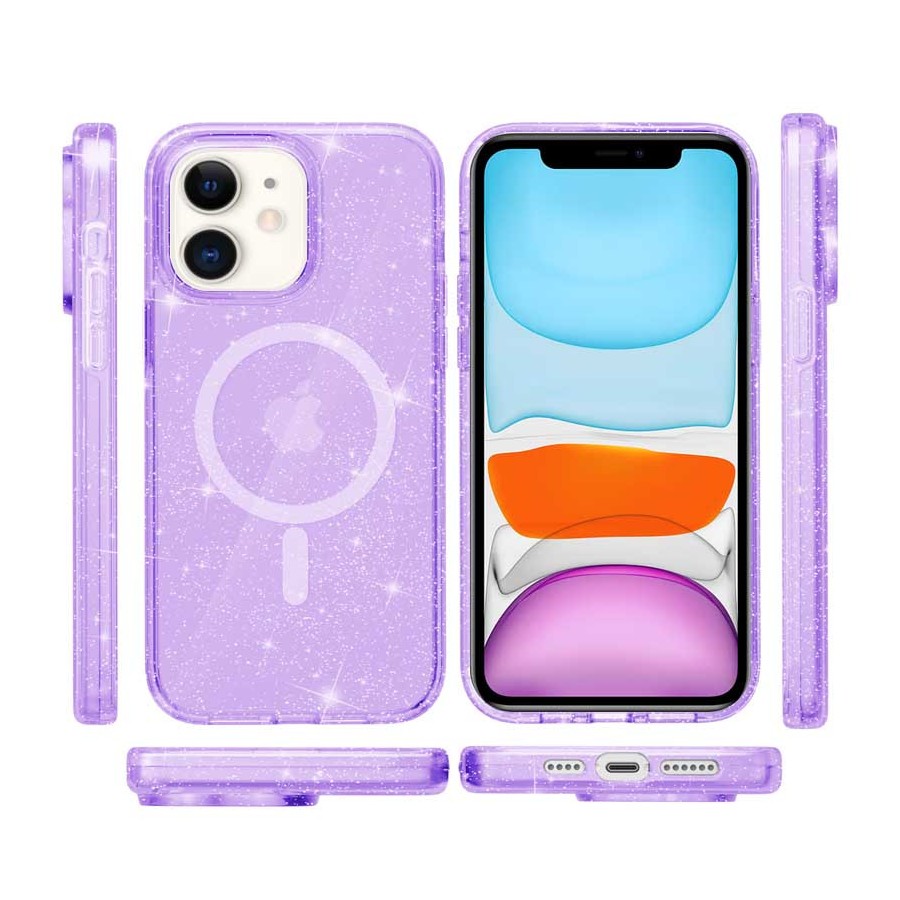 Чохол TPU Galaxy Sparkle (MagFit) для Apple iPhone 11 (6.1") Purple+Glitter