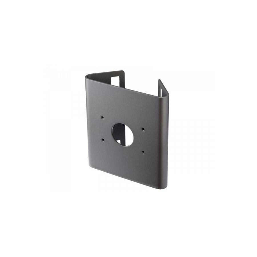 Кронштейн HANWHA SBP-302PM у темно-сірому кольорі призначений для встановлення булет-камер на циліндричні стовпи діаметром від 80 мм. Конструкція забезпечує надійну фіксацію обладнання та стійкість до вібрацій, що особливо важливо для зовнішніх систем відеоспостереження.